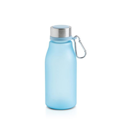 350 ml Matte RPET Bottle with Carabiner. Practical and easy to carry, this bottle is made of RPET, a recycled and reusable material, making it a choice aligned with ecological progress. An excellent alternative to single-use plastics, it is suitable for both adults and children. Its design features a secure screw-on cap and a functional carabiner, perfect for taking it anywhere while promoting sustainability in your daily life.