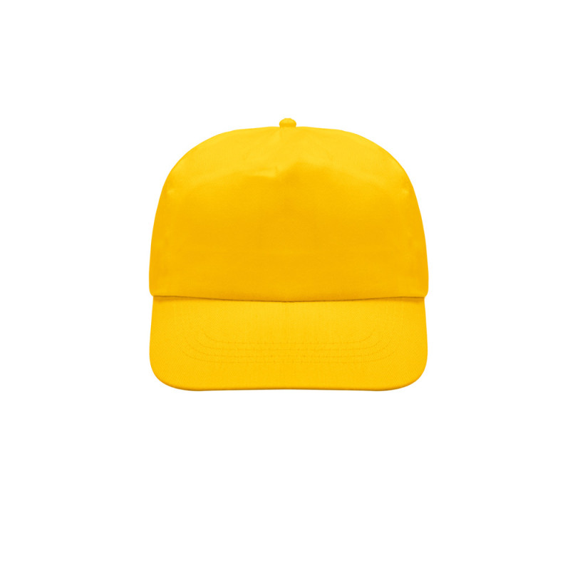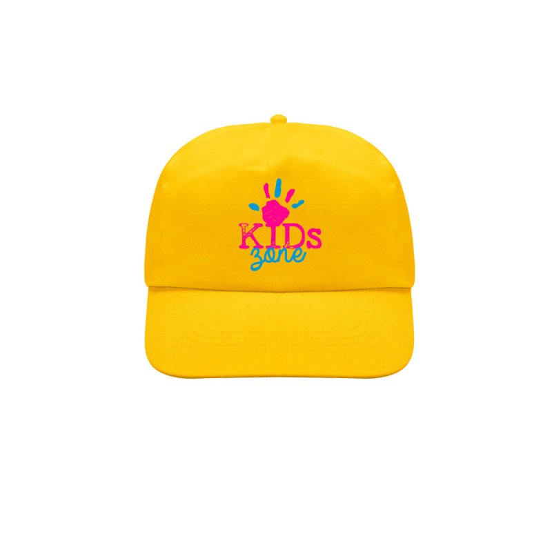 Promotional cap fot kids, in polyester. 5-panel cap, with a front panel ideal for engraving. The closure is in velcro. Ideal for large outdoor events.