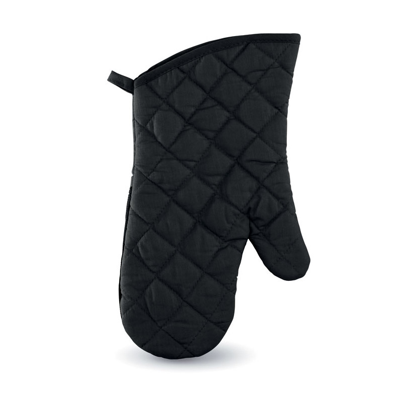 Useful kitchen oven glove in cotton material with one side rubber material.