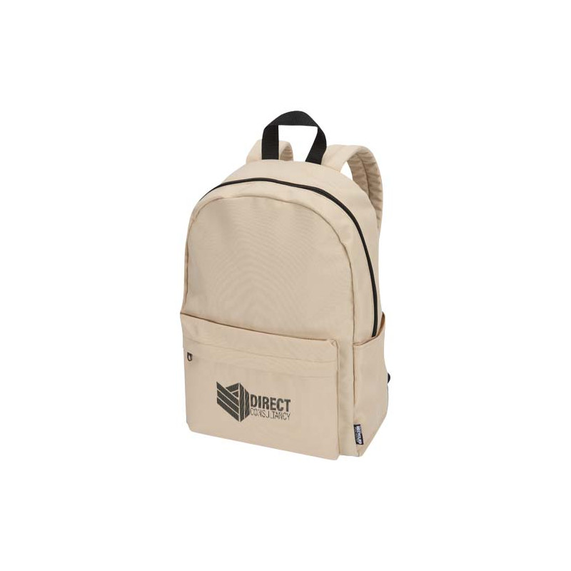 Made from water-repellent, GRS certified recycled polyester, the Byron city laptop backpack is your everyday companion for work, school, or city adventures. With a streamlined 16 litres capacity and a dedicated padded sleeve for laptops up to 14", it offers practical storage in a clean, modern design. Inside, you'll find smart organisational pockets to keep your gear in order, while two side pockets and a zipped front pocket provide quick access to essentials. Whether you're commuting or exploring the city, this backpack delivers style, comfort, and functionality every step of the way.