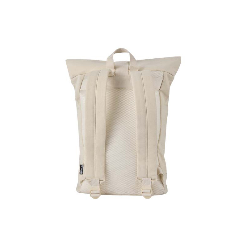 Made from GRS certified recycled water-repellent canvas with a colour-matching RPET lining, the Recanvas rolltop backpack is designed for everyday versatility. It features a padded compartment for laptops up to 14", a zipped front pocket, a breathable mesh back, and adjustable shoulder straps for comfort. The rolltop closure expands to fit your gear, making it ideal for commuting, travelling, or outdoor adventures. Volume capacity: 16 litres.