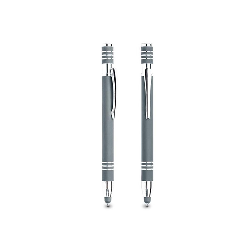Aluminium stylus pen with rubber finish. Personalised promotional gift ideal for office, events or everyday use with your logo.