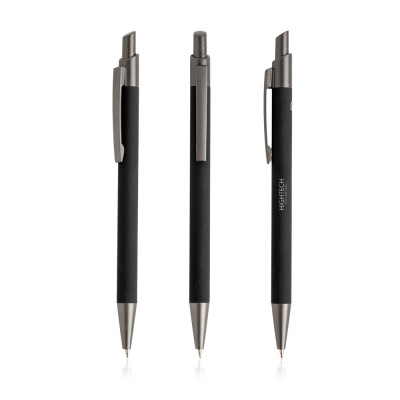 Ballpoint pen in recycled aluminum, rubber touch. An environmentally friendly gift that offers a modern design, with the elegant touch of rubber. This push ballpoint pen comes with black writing.