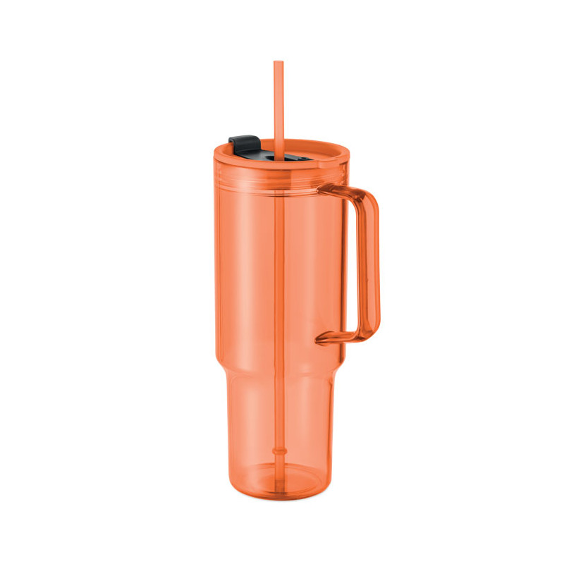 Tumbler in RPET with straw lid including PP straw. Capacity: 1200 ml.