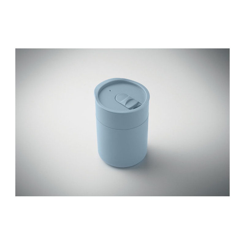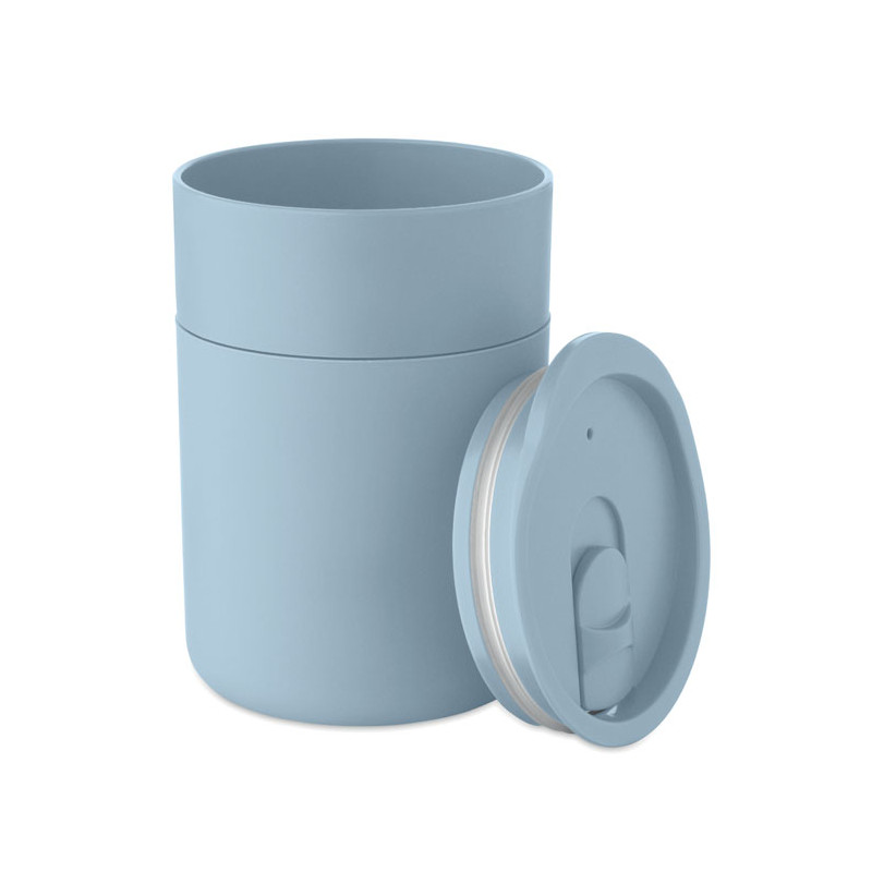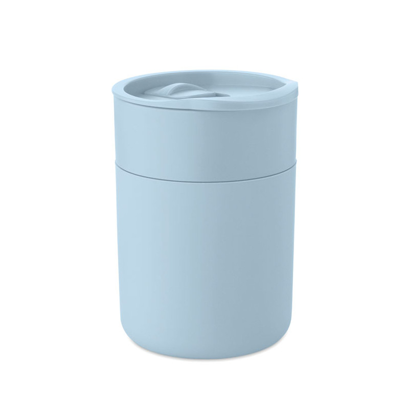 330ml Goblet cup in PP with silicone sleeve and sliding lid. The practical solution for creating promotional gifts focused on daily routine and take-away coffee.