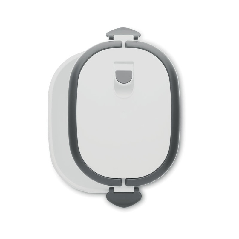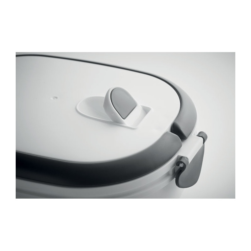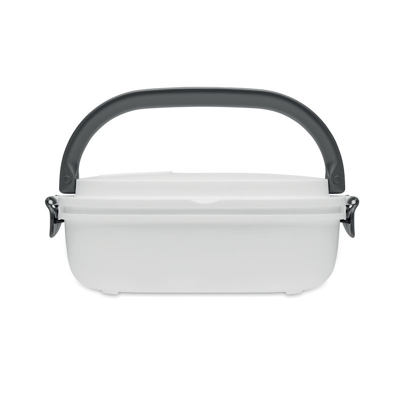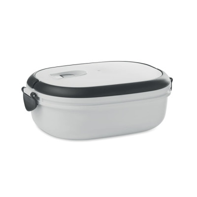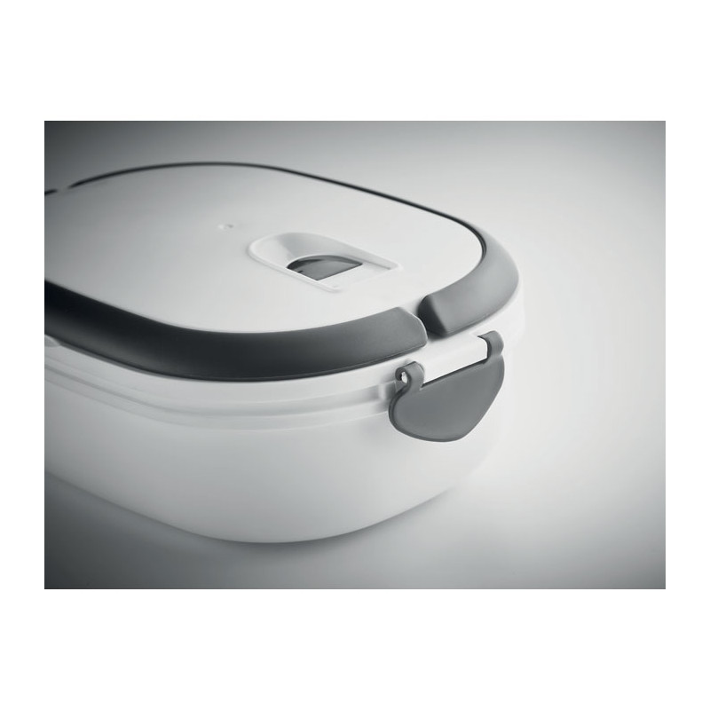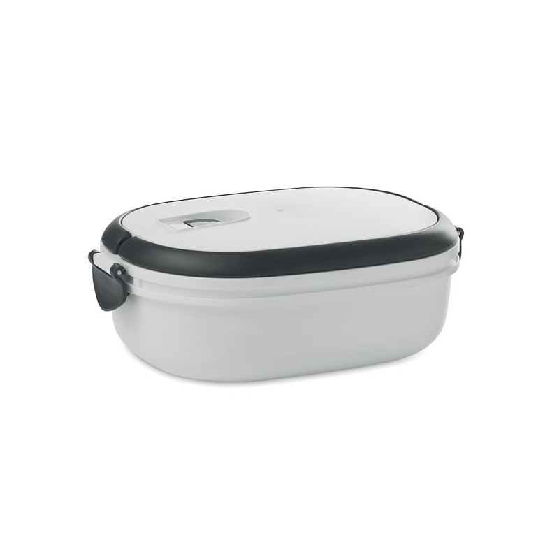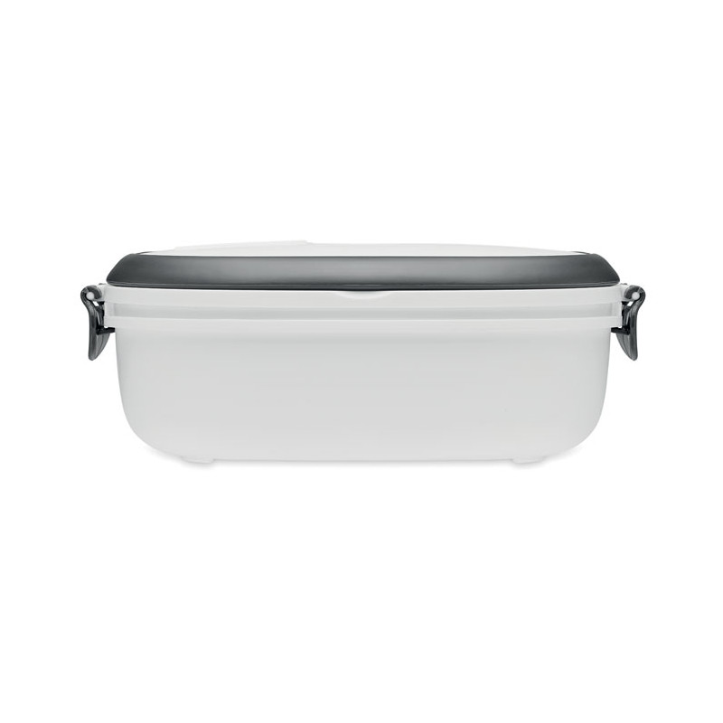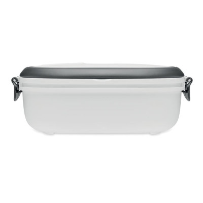 Lunch box with air tight lid made of PP both out side and inside. Microwave and dishwasher safe. Capacity 1000 ml.