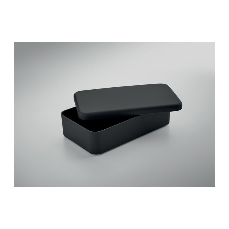 Lunch box in PP with RPET elastic band closure. Capacity: 750 ml.