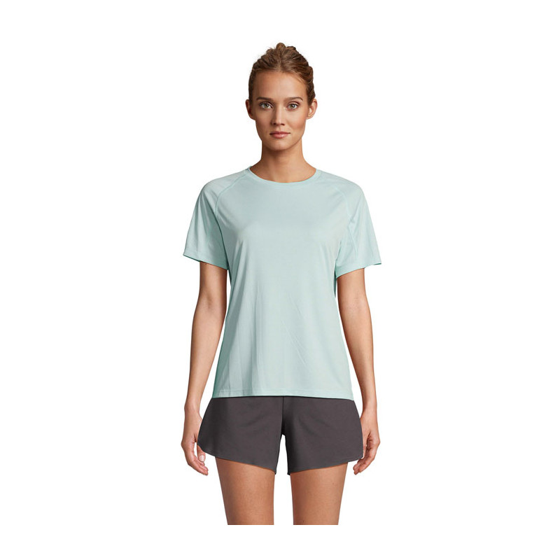SOL'S VORTEX WOMEN, RAGLAN SLEEVE T-SHIRT, Ripstop-effect knit - 100% breathable recycled polyester, Raglan sleeve T-shirt, Fitted cut, Self-fabric round neck. About sizes matching, please refer to the size chart in the product documentation section.