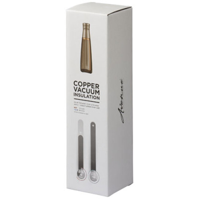 The Duke Bottle is double wall 18/8 grade stainless steel with vacuum insulation. The inner wall is plated with copper for ultimate conductivity to keep drinks hot for 12 hours and cold for 48 hours. Volume capacity is 500 ml. Presented in an Avenue gift box.