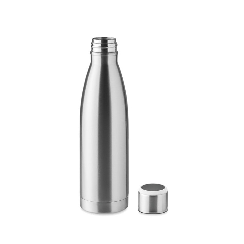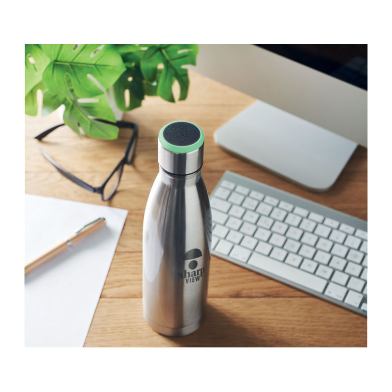 Double wall stainless steel bottle with hydration reminder. Sensor light glows every hour reminding you when it is time to drink. Including 1 CR2032 battery. Capacity: 500 ml.