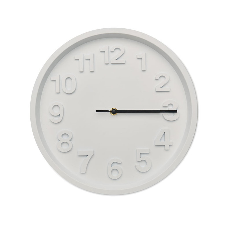 Wall clock in PP with aluminium hands and silent movement. Requires 1 AA battery (not included).