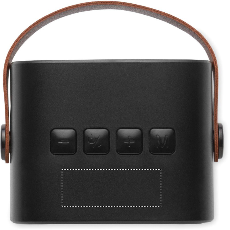 5.0 wireless speaker in recycled ABS with PU handle. 1 Rechargeable Li-ION 500 mAh battery included. Includes an SD card port and an AUX/ USB cable. Output data: 5W, 3 Ohm and 5V. Playing time approx. 4h.