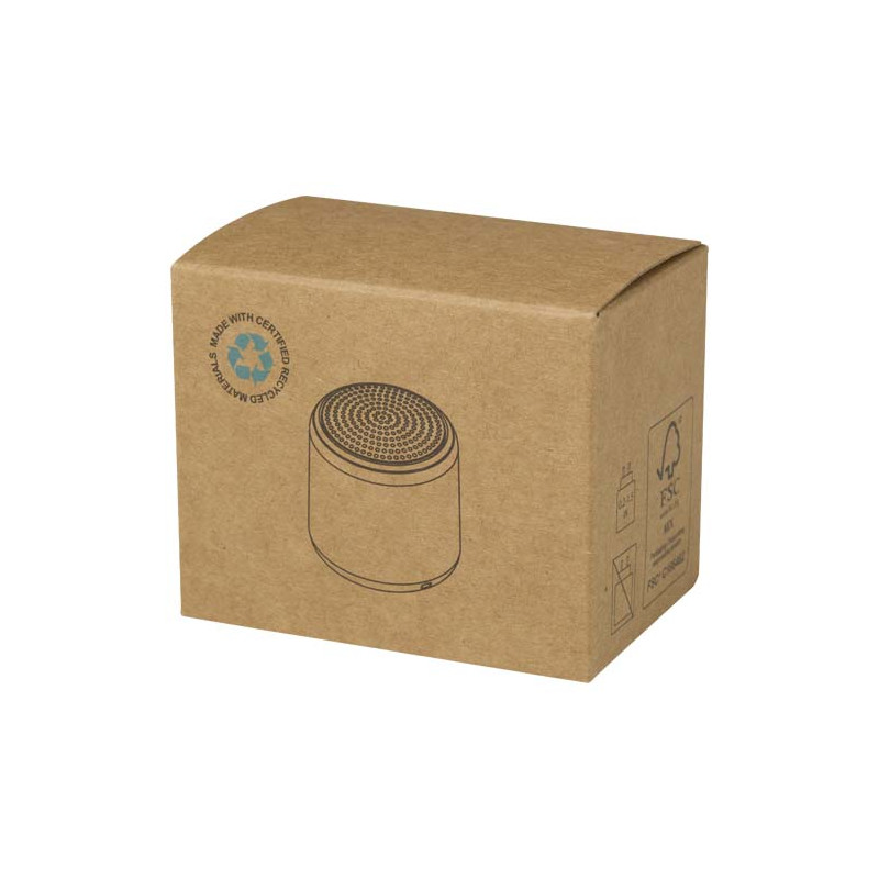 Take your music anywhere with the compact Velkis Bluetooth® 3W speaker. Made from recycled plastic, it features a convenient wrist strap and simple one-button control. With a 300 mAh battery and Type-C charging, it offers the perfect portable audio solution. A 30 cm USB-A to Type-C charging cable is included.