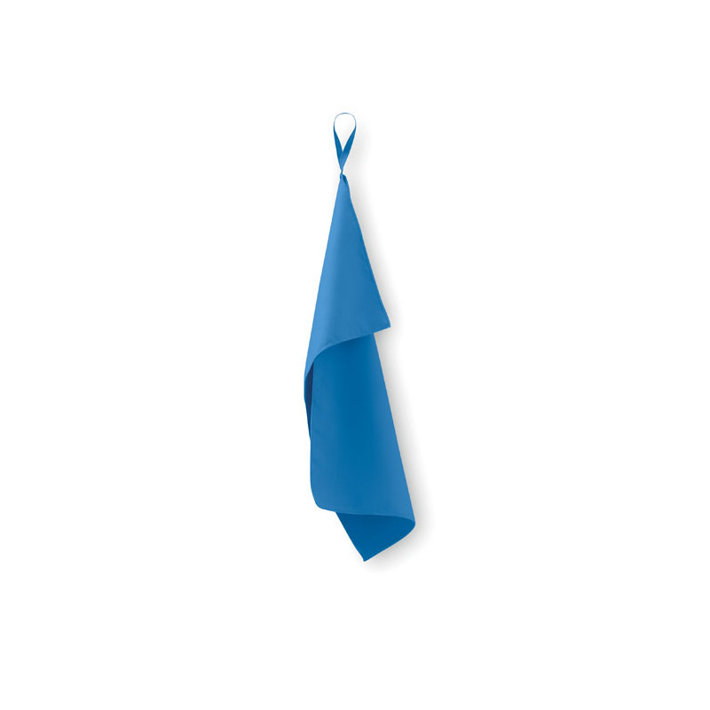 Microfibre towel made of 90% polyester and 10% polyamide with elastic handle. Lightweight and quick drying. Size 30 cm x 50 cm.