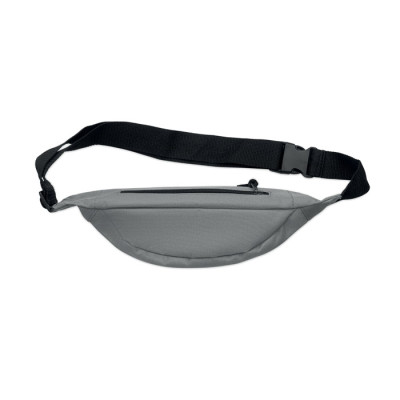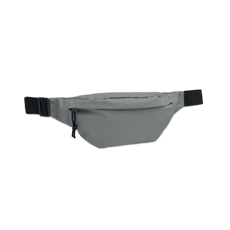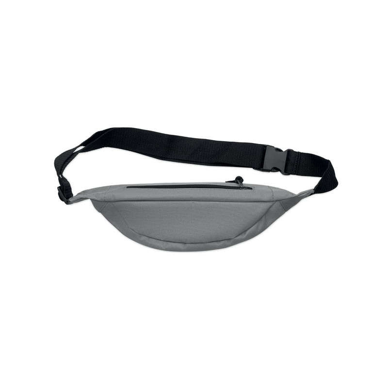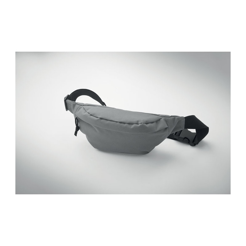 Waist bag in 600D RPET polyester with zippered main compartment and hidden zippered back compartment.
