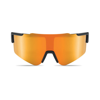 Sport sunglasses with mirrored lenses and a black frame. A practical and stylish gift, perfect for promoting your brand.