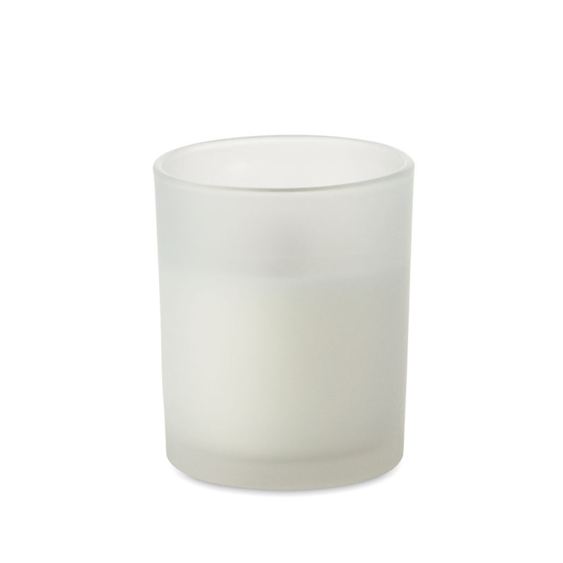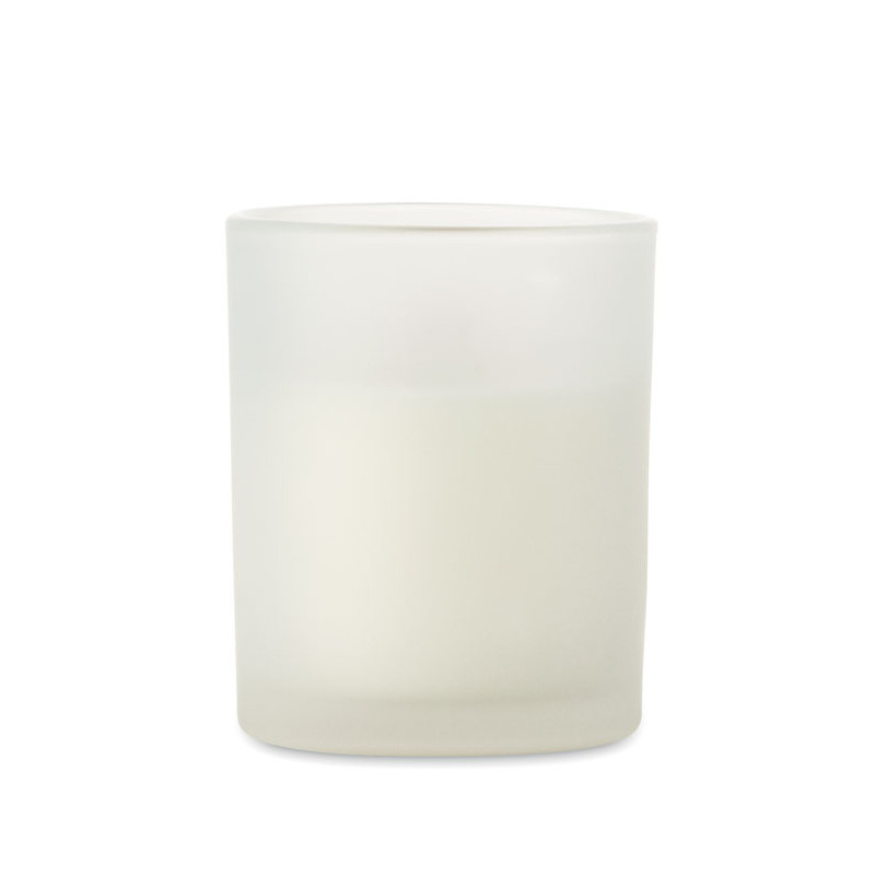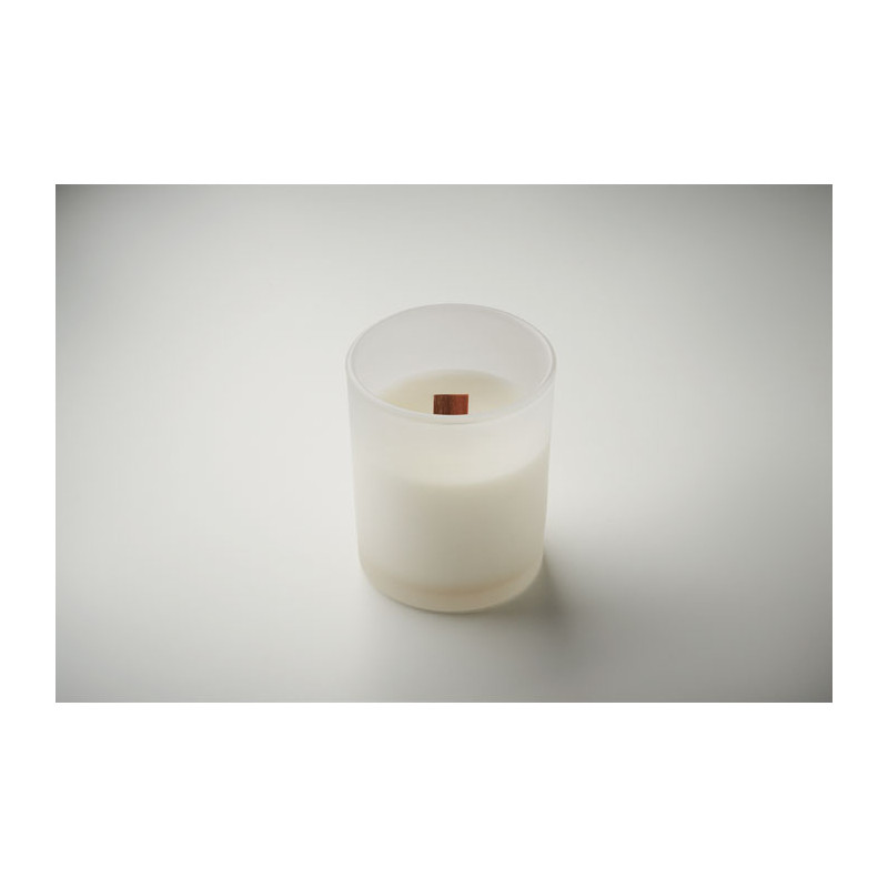 Vegetable wax candle with vanilla scent, sustainable promotional gift. Personalize with logo and promote your brand eco-consciously.