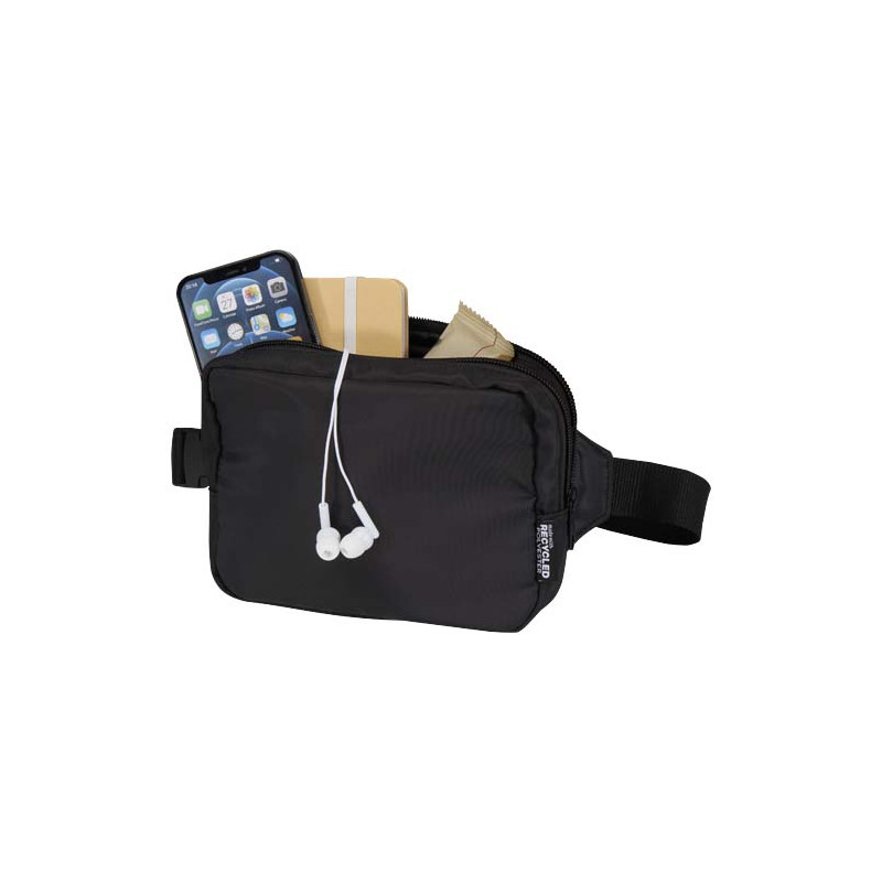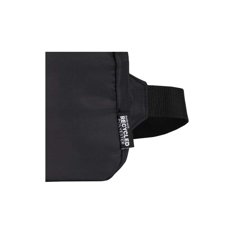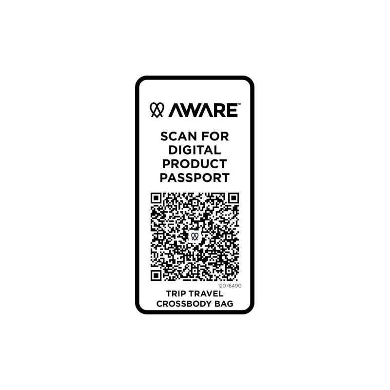 A mala de viagem tiracolo reciclada "Trip Aware™" é uma mala compacta e funcional concebida para uso diário e viagens leves. Feita de poliéster sarja 290D durável com revestimento traseiro em malha e forrado com RPET 210D/PU, esta mala apresenta um formato elegante e sofisticado com opções práticas de armazenamento. O compartimento principal com fecho de correr guarda os seus artigos essenciais do dia a dia, enquanto o bolso traseiro com fecho de correr inclui um porta-chaves de fita e compartimentos dedicados para canetas e passaporte. A alça ajustável com fivela garante um ajuste seguro e confortável durante o movimento. Cada saco também vem com um rastreador "Aware™". Esta funcionalidade inovadora permite aos utilizadores rastrear as origens e o percurso do seu artigo através de um código QR, aumentando a transparência na cadeia de abastecimento e promovendo uma ligação mais forte entre o produto e o seu processo de produção. Capacidade volumétrica: 1 litros.