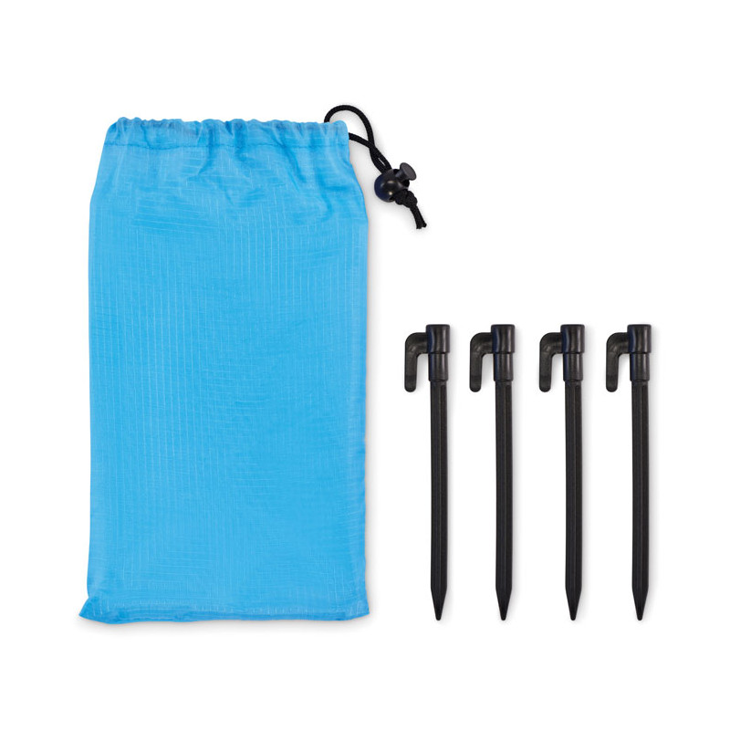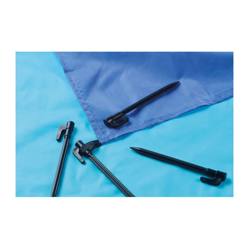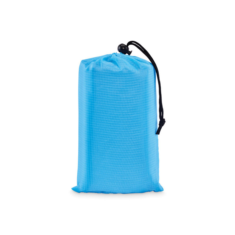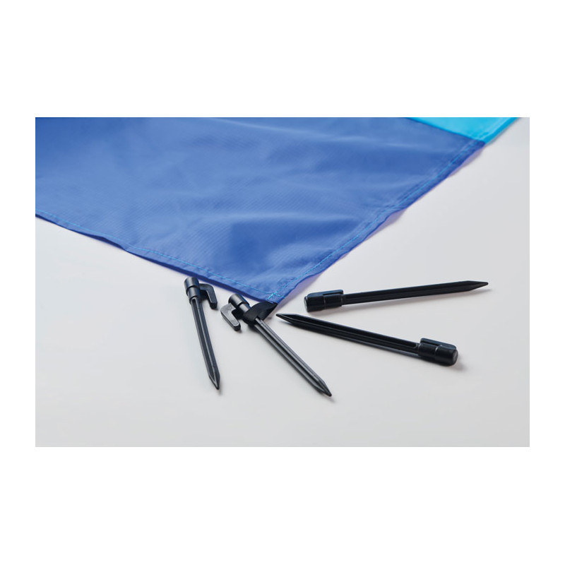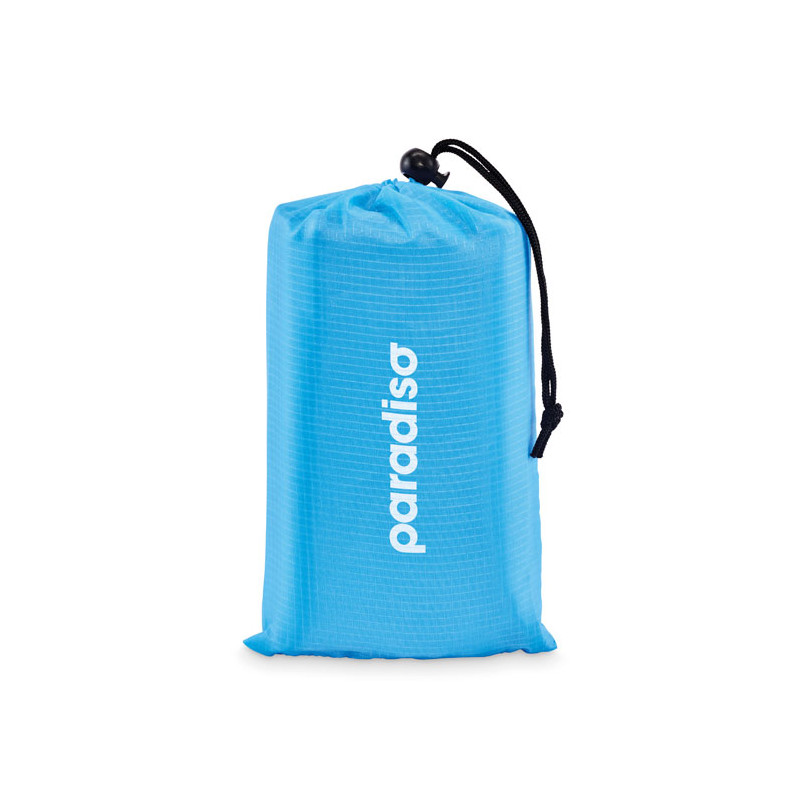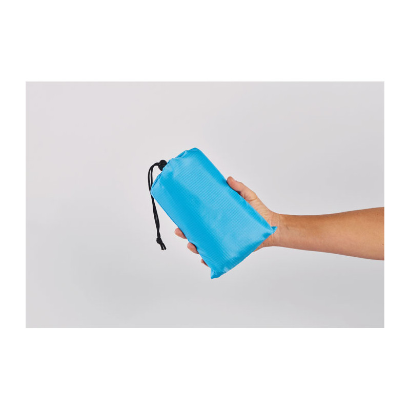 Esteira de praia leve em poliéster 210T com 200x210cm. Inclui 4 ganchos pretos e uma bolsa com cordão a condizer para facilitar o transporte.