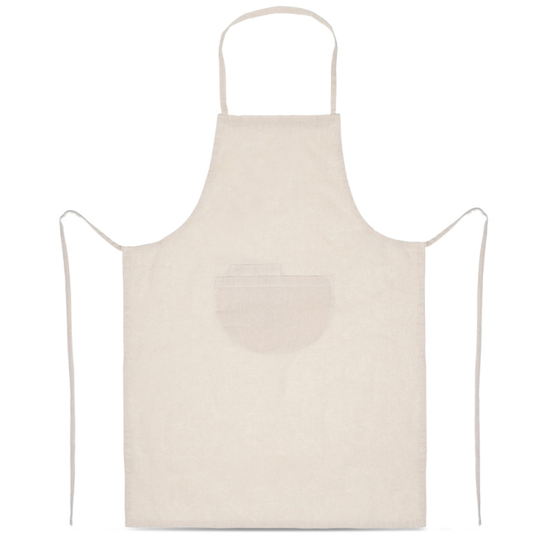 Avental de algodão reciclado 140g, corte pelo joelho com um grande bolso central. Um avental da linha eco friendly muito confortável.Indicado para empregados da restauração, para grandes eventos culinários ou simplesmente para o uso doméstico. Personalize estes aventais com o logotipo do seu negócio e ofereça à sua equipa e aos seus clientes.