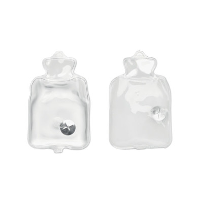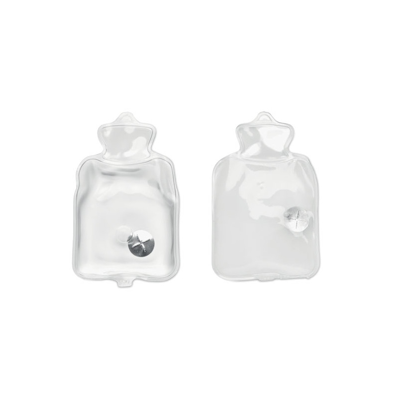 Aquecedor de mãos em malha de poliéster. Inclui uma almofada térmica instantânea em PVC que pode ser activada a pressionar a placa metálica no interior. Reutilizável colocando a almofada em água quente.