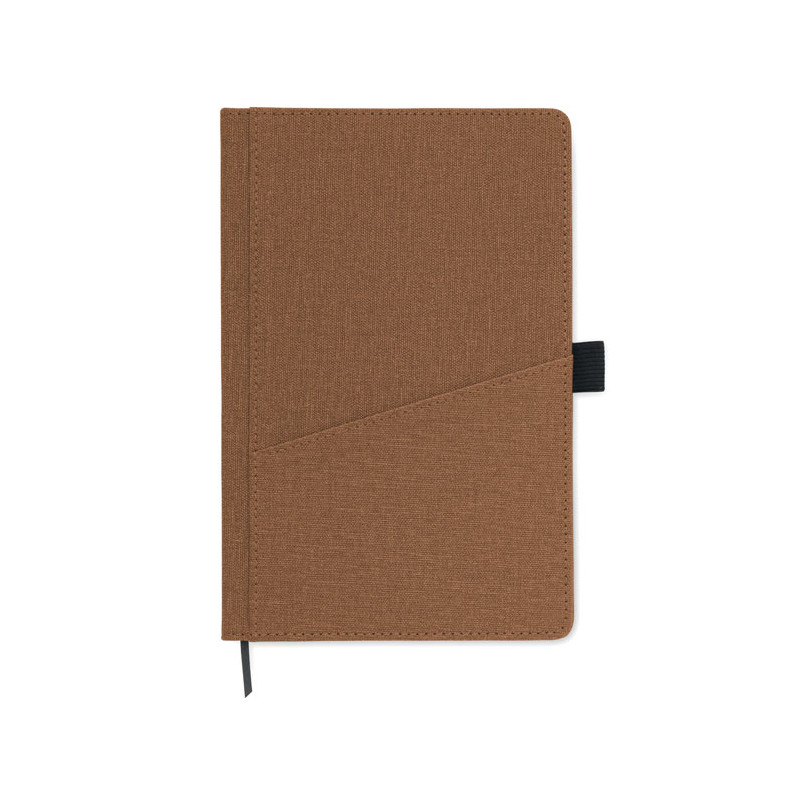 O bloco de notas que guarda tudo. Com capa dura de PU, bolso para o telefone e 160 páginas de papel reciclado. Um merchandising de empresas prático e sustentável.