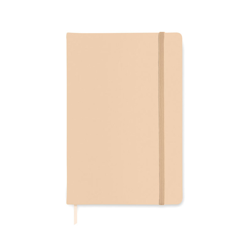 Caderno A5 com capa de toque suave e acabamento em PU, disponível em várias cores vibrantes. Com 96 folhas PAUTADAS, possui uma fita elástica e marcador de página em tecido coordenado. Ideal para personalizar com o seu logotipo, oferece amplo espaço de impressão. Este modelo destaca-se como uma opção económica e um dos mais populares na nossa categoria de cadernos personalizados.