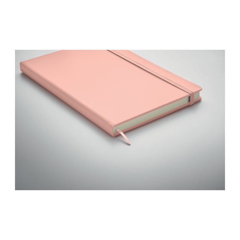 Bloco de notas com capa de toque suave, acabamento em PU e disponível numa vasta gama de cores. Dispõe de 96 folhas lisas, com elástico e marcador de páginas de tecido a condizer. Conta com uma vasta zona para imprimir o logotipo ou imagem. Dentro da categoria de bloco de notas este é o mais barato e também dos mais vendidos.