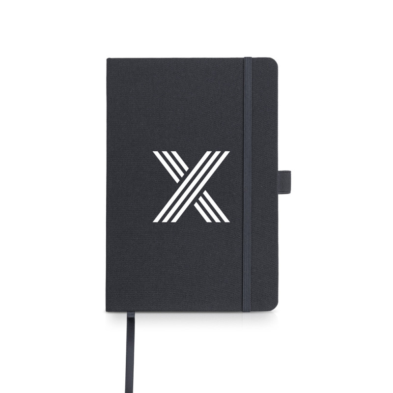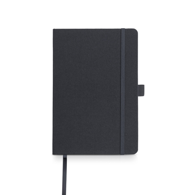 Bloco A5 em RPET com suporte para esferográfica. Um bloco clássico num material moderno e eco-friendly. Este bloco conta com 160 páginas de 70g, proveniente de florestas geridas de forma responsável, um fitilho, um elástico e um suporte de esferográfica. Todos os detalhes na mesma cor da capa. Um brinde sempre útil e, agora, mais amigo do ambiente.