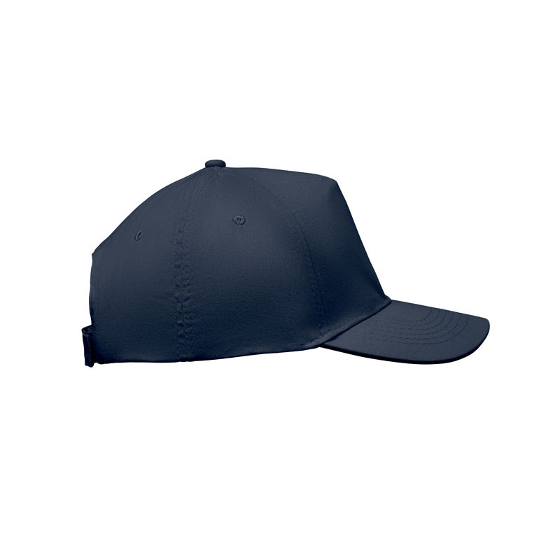 Boné de basebol de 5 painéis em sarja de algodão 180 gr/m² com fecho de velcro ajustável. Tamanho 7 1/4.