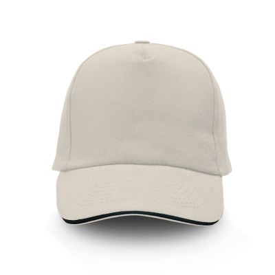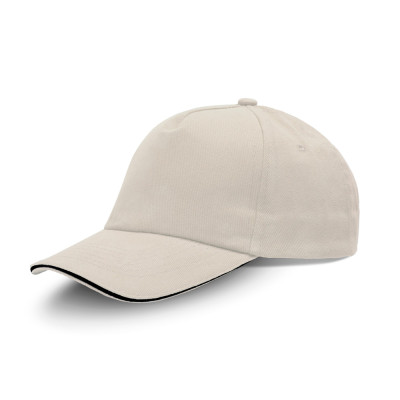 Boné de cinco painéis em sarja de algodão com pala sandwich e fecho metálico. O brinde personalizado clássico e resistente para promover a sua marca com conforto e visibilidade.