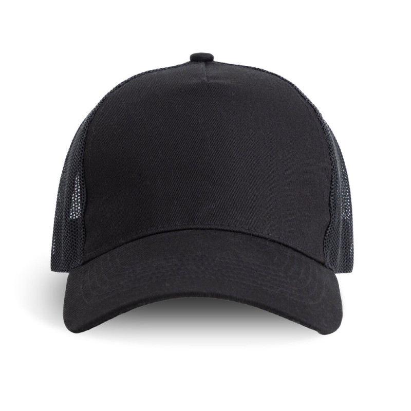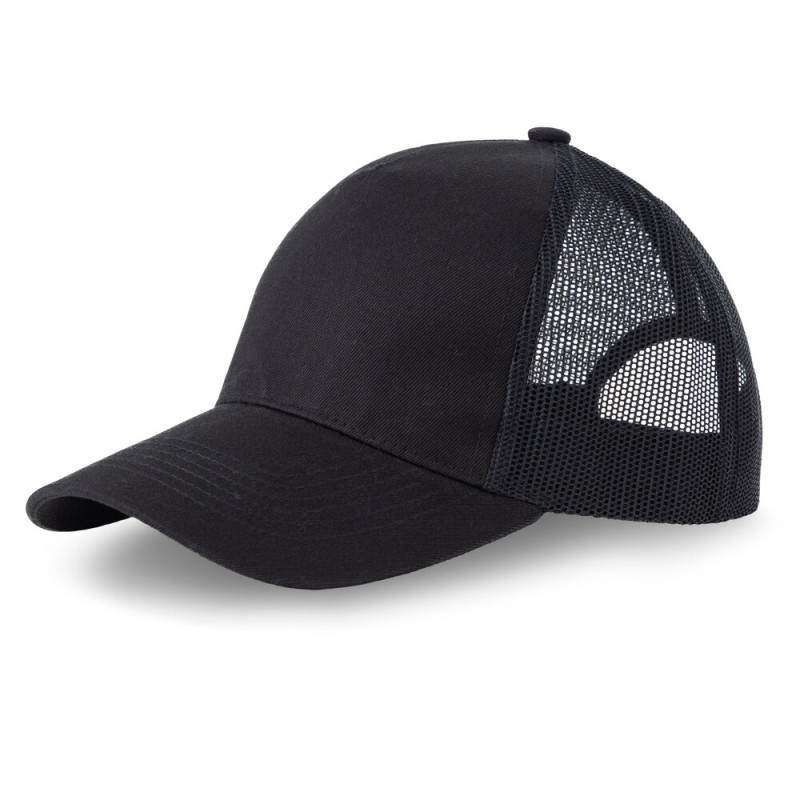 Boné trucker de 5 painéis, pala semi-curva com 6 costuras e fecho ajustável tipo snapback, permitindo um ajuste prático e seguro. O painel frontal é fabricado em 100% algodão, proporcionando um toque suave, enquanto as laterais e a parte traseira em poliéster garantem leveza e respirabilidade. Um modelo versátil e moderno. A escolha ideal para um look descontraído e casual.