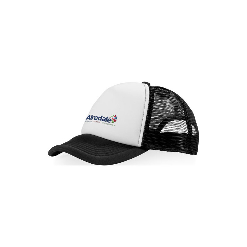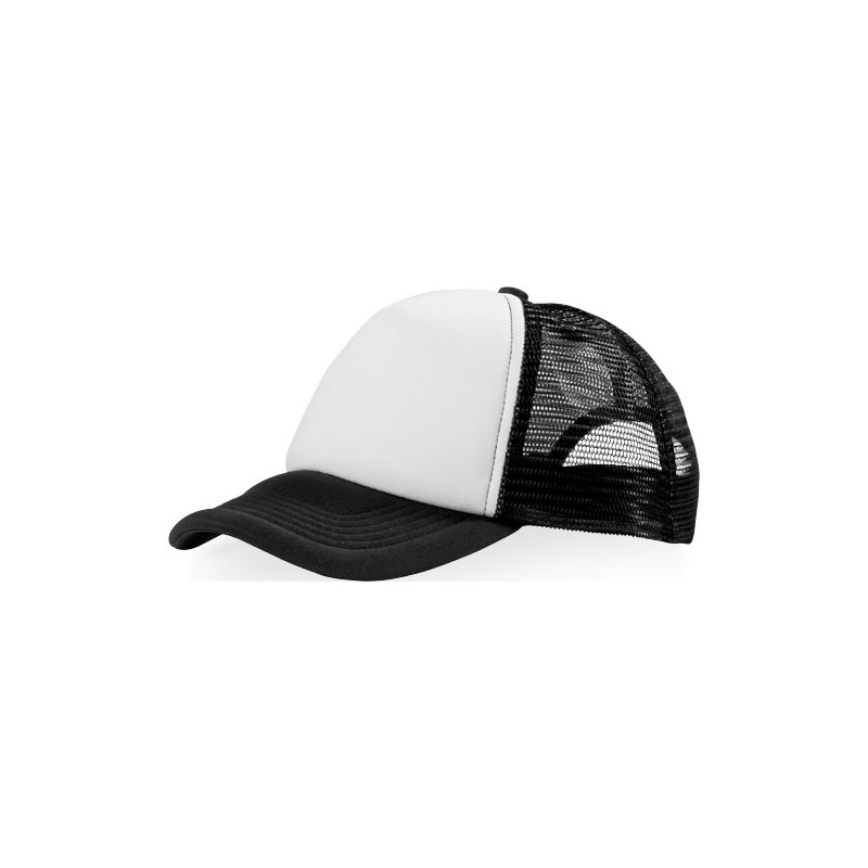 O boné Trucker de 5 painéis é um boné de camionista clássico com espuma de jersey de poliéster de 100 g/m² à frente e malha de poliéster respirável atrás. Este boné possui um prático fecho de plástico para um ajuste seguro a uma circunferência da cabeça de 58 cm, assegurando uma sensação confortável e personalizada.