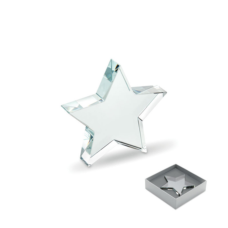 Prémio ou troféu estrela em cristal. Apresentado numa caixa de presente