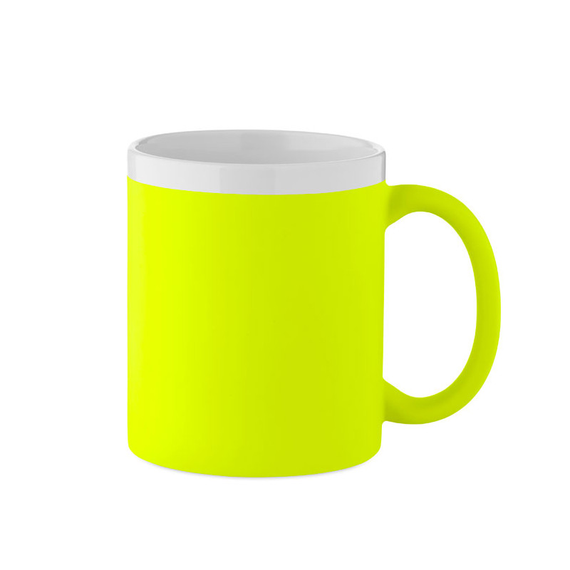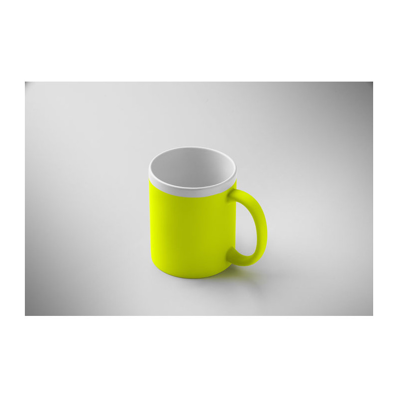 Caneca de cerâmica em grés com exterior mate e interior e rebordo brancos. Capacidade 300 ml. Possibilidade de gravação. Embalagem individual em caixa de cartão branca.