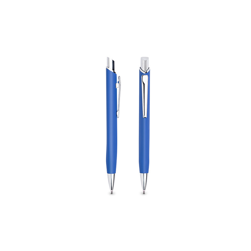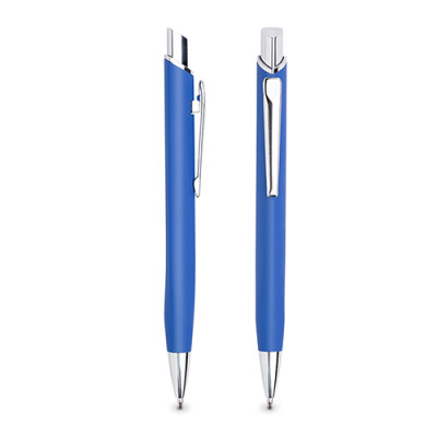 Esferográfica triangular em metal, com acabamento em borracha. De formato peculiar, esta esferográfica apresenta um certo requinte graças aos seus detalhes e à sua personalização que, quando feita a laser, apresenta um acabamento espelhado. Um brinde que lhe permite fugir da esferográfica comum e da personalização simples. Com sistema pulsar. Esta esferográfica é de escrita preta.