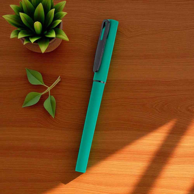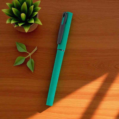 Esferográfica roller em ABS reciclado com tampa e corpo aborrachado para uma escrita suave em cor preto, precisa e confortável. O acabamento aborrachado garante uma boa aderência, mesmo em longos períodos de uso. Ideal para o dia a dia no escritório, escola ou uso pessoal. Combina funcionalidade e design moderno.