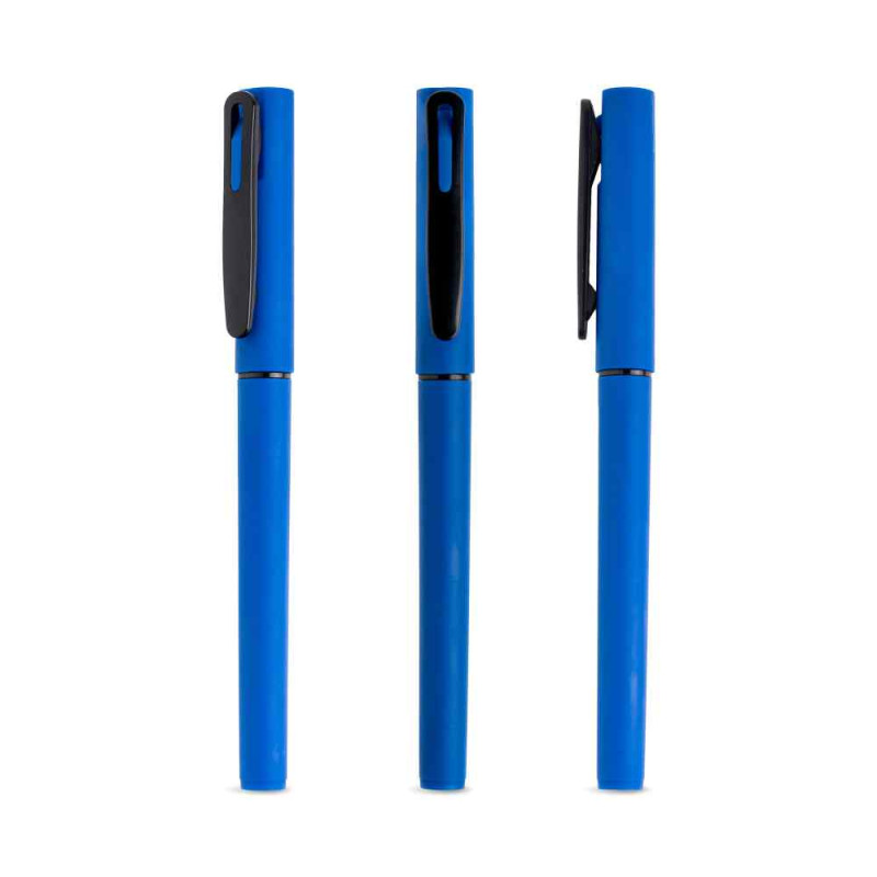 Esferográfica roller em ABS reciclado com tampa e corpo aborrachado para uma escrita suave em cor preto, precisa e confortável. O acabamento aborrachado garante uma boa aderência, mesmo em longos períodos de uso. Ideal para o dia a dia no escritório, escola ou uso pessoal. Combina funcionalidade e design moderno.