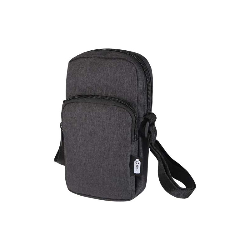 Bolsa para telemóvel de viagem em poliéster reciclado com certificação GRS, prática e sustentável, ideal para brindes ecológicos e modernos.