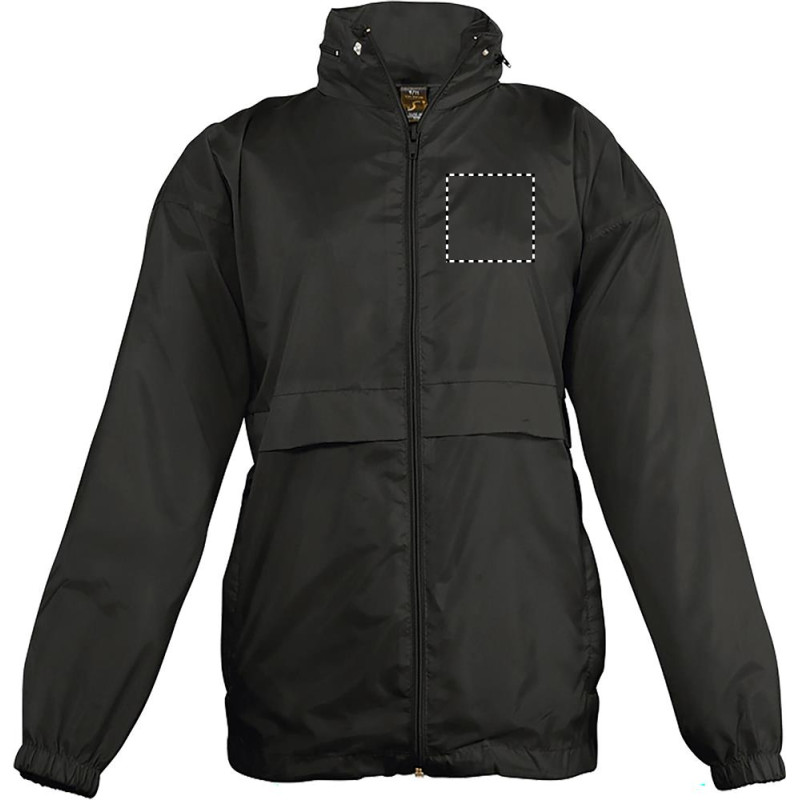 "SOL'S SURF Corta-vento Criança r 210g/m², À prova d'água, abertura com zíper, capuz dobrado no pescoço, 2 bolsos externos fechados com zíper, sistema de dobra ""in bag"" com elásticos atados na cintura, aberturas de ventilação, cordão interno preso na base. Tamanhos - 5-6 anos: 105-116cm (XL), 7-8 anos: 117-128cm (XXL), 9-11 anos: 129-141cm (3XL), 12-14 anos: 142-164cm (4XL), 15-16 anos: 165-176 cm (5XL)"