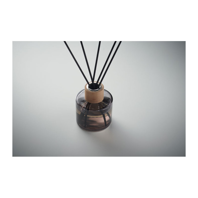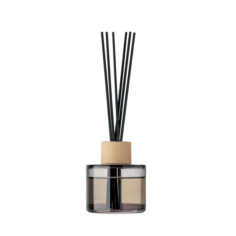 Difusor de varetas com aroma a baunilha. Brinde personalizado e elegante que transmite bem-estar e sofisticação, ideal para empresas que valorizam o cuidado com a marca.