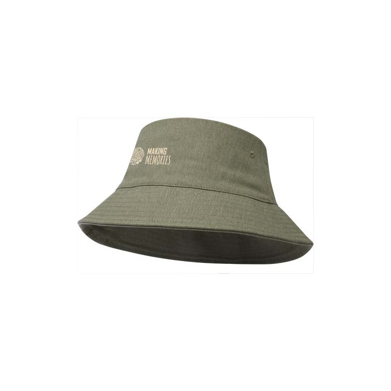 O chapéu de sol reciclado "Wicklow" é feito de 70% algodão reciclado e 30% poliéster reciclado, e é desenhado para um ajuste confortável e com uma circunferência de cabeça de 60 cm. Cada chapéu inclui também com um rastreador Aware™. Esta funcionalidade inovadora permite aos utilizadores rastrear as origens e o percurso do seu artigo através de um código QR, aumentando a transparência na cadeia de abastecimento e promovendo uma ligação mais forte entre o produto e o seu processo de produção.