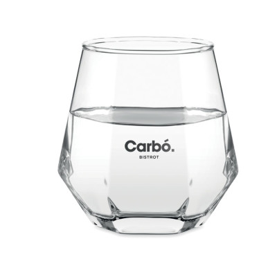 Copo curto inclinado em forma de diamante geométrico. Para whisky ou outros licores. Capacidade: 300 ml.