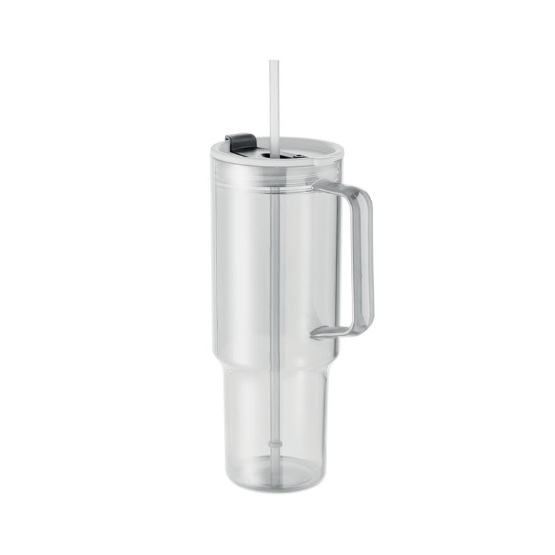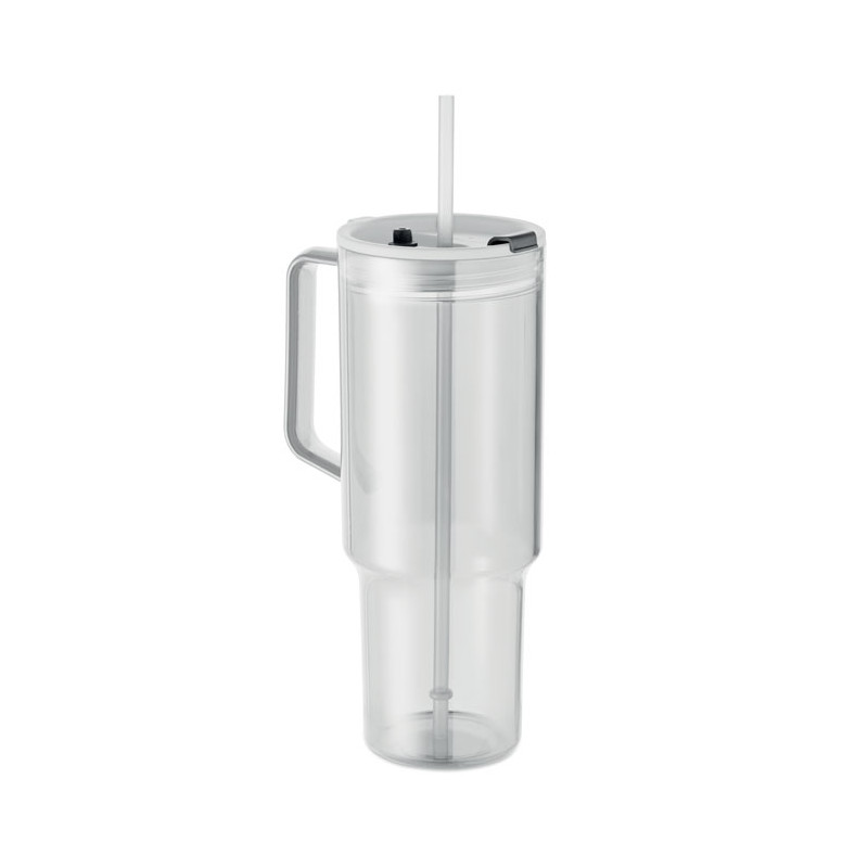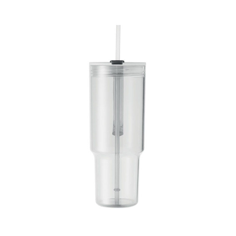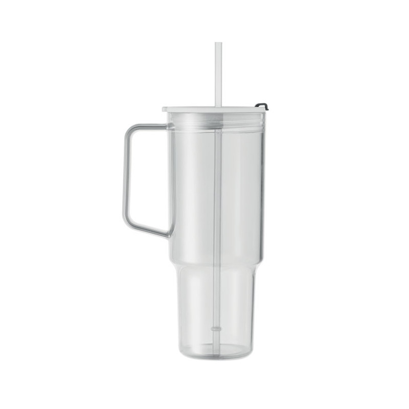 Copo em RPET com tampa de palha e palhinha em PP. Capacidade: 1200 ml.