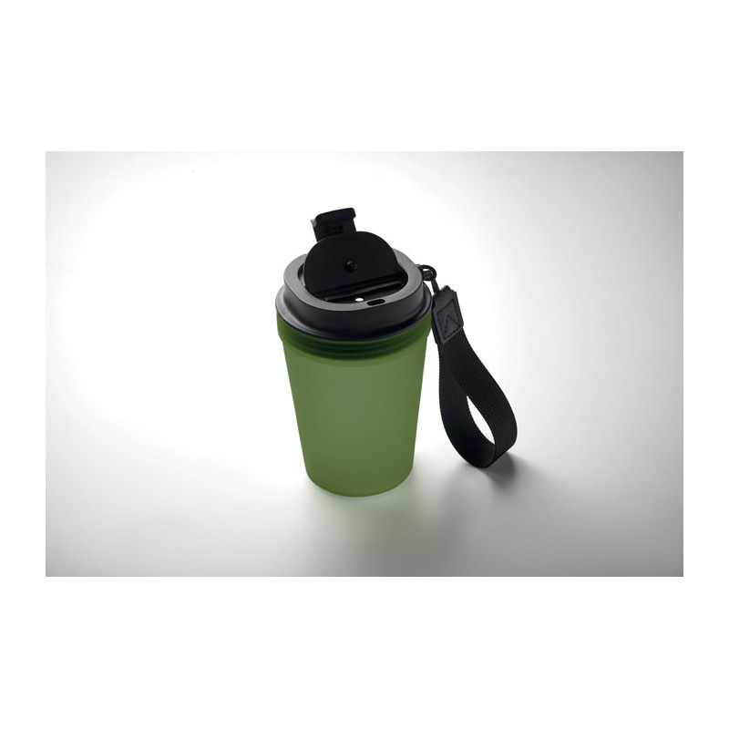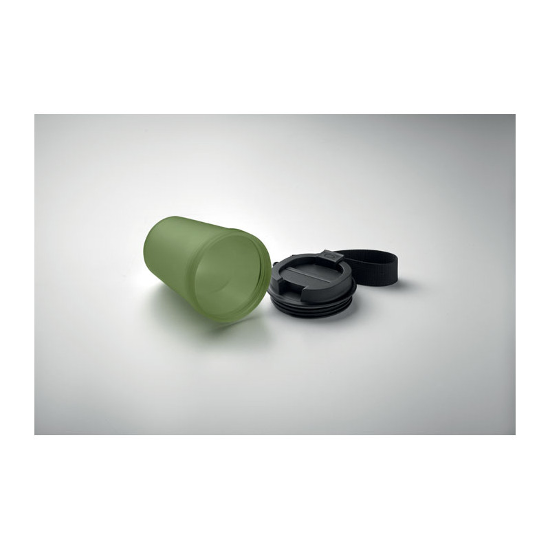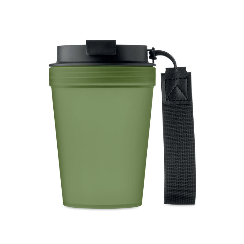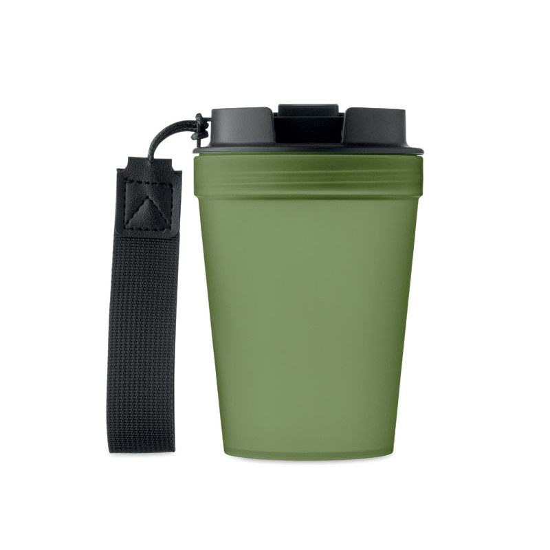 Leve e prático, este copo de café personalizado em plástico para levar será um brinde útil para oferecer a todos os membros da sua equipa. Com parede dupla em PP e tampa, tem capacidade para 300 ml. Ideal para ações promocionais e merchandising corporativo.