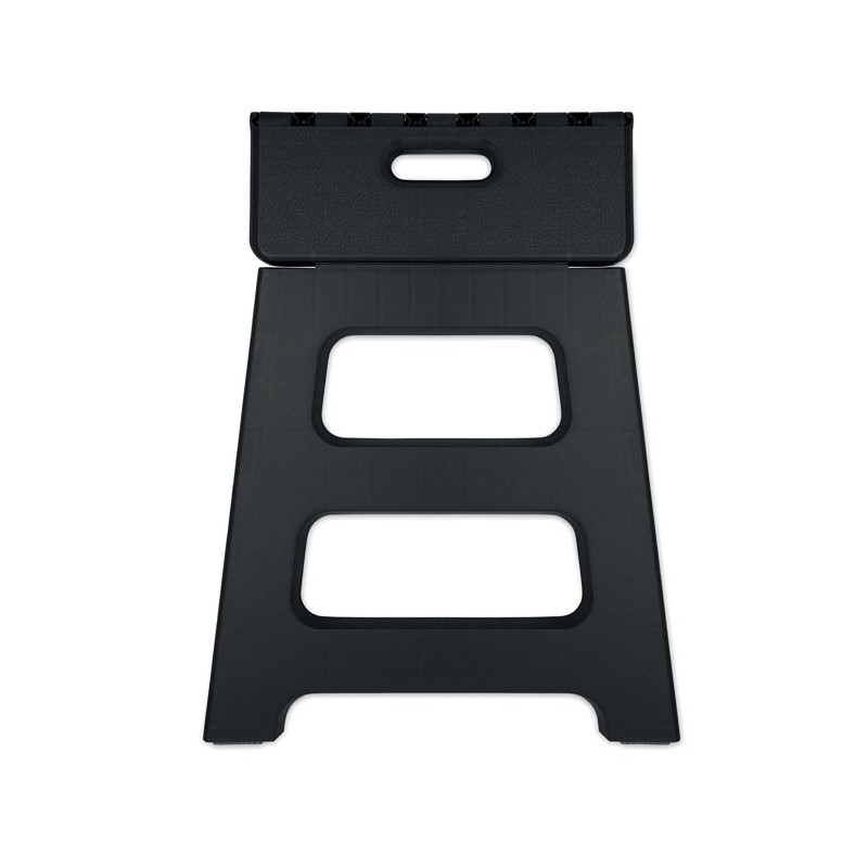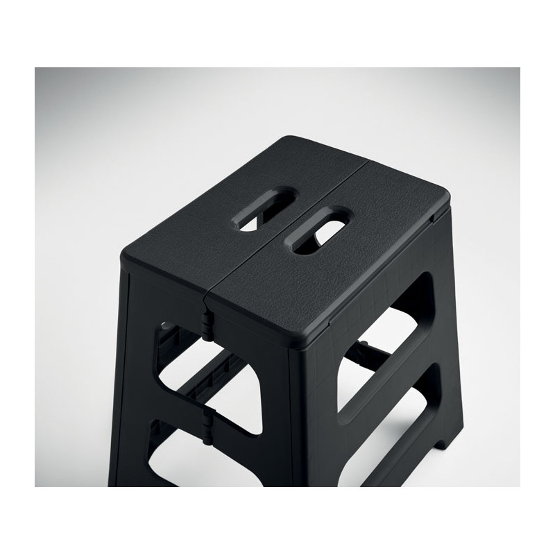Banco portátil dobrável em plástico PP com superfície antiderrapante. Suporta até 120 kg de carga.
