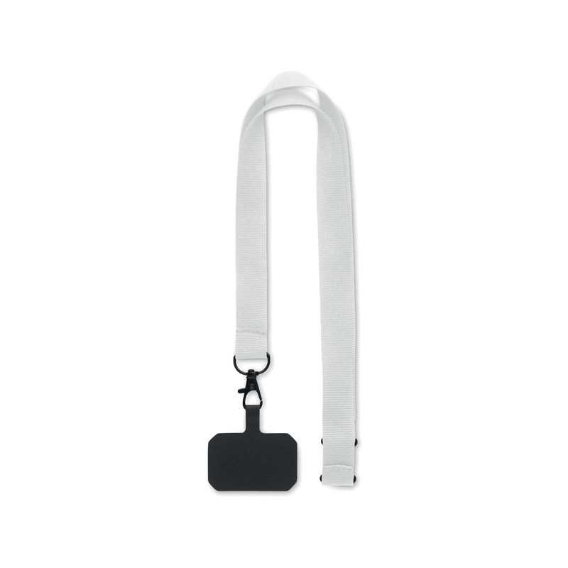 Cordão de poliéster com suporte para telefone e fivela de segurança. 2 cm.