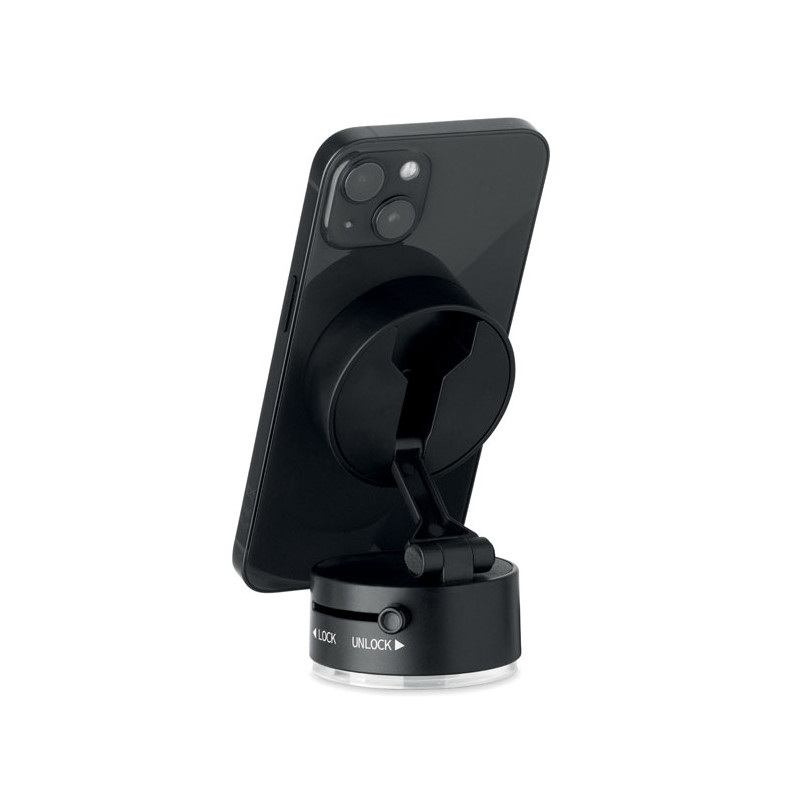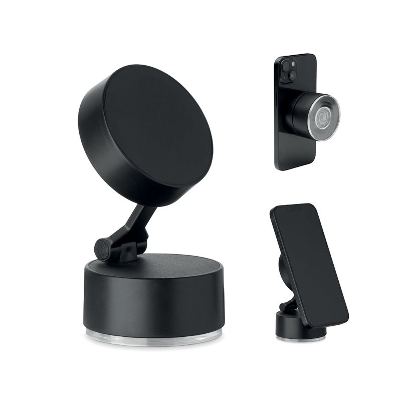 Suporte Magphone com fixação por sucção a vácuo. Um brinde personalizado publicitário magnético e seguro para todos os telemóveis.