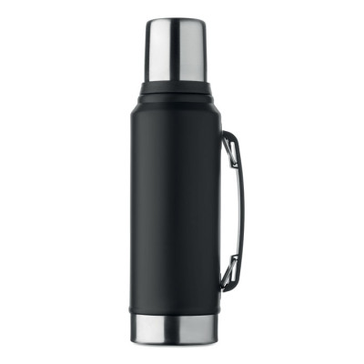 Garrafa de parede dupla isolada a vácuo feita de aço inoxidável reciclado (90% aço inoxidável reciclado e 10% aço inoxidável) com pega lateral. Com tampa em PP e copo em aço inoxidável reciclado. Sem fugas. Capacidade: 1L.