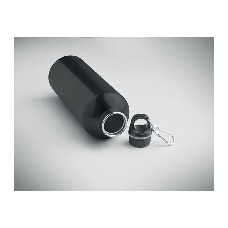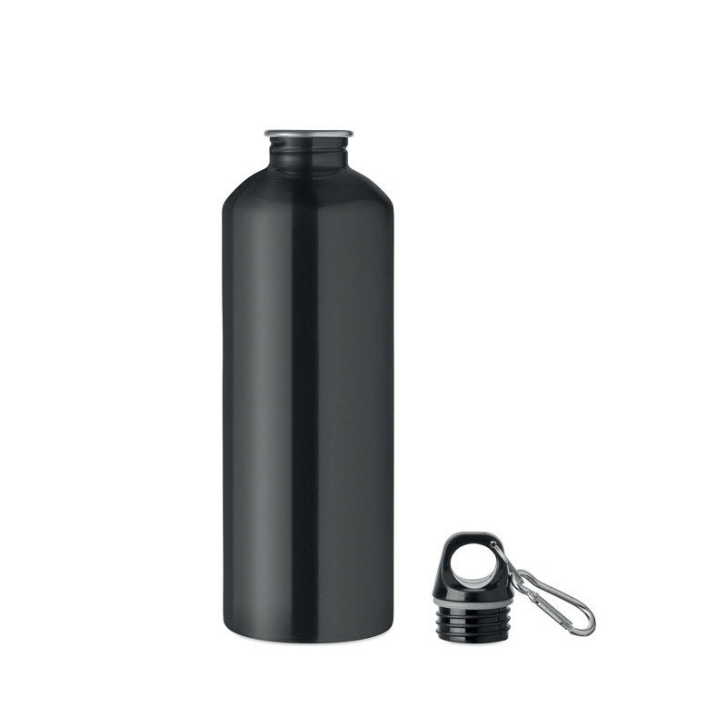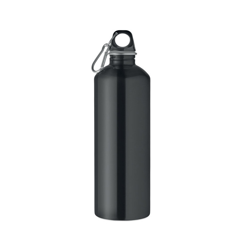 Garrafa de parede simples (90% aço inoxidável reciclado e 10% aço inoxidável) com uma tampa PP e um mosquetão. Capacidade de 1000 ml. Uma vez que se trata de uma garrafa de parede simples, pode ocorrer transferência de calor.